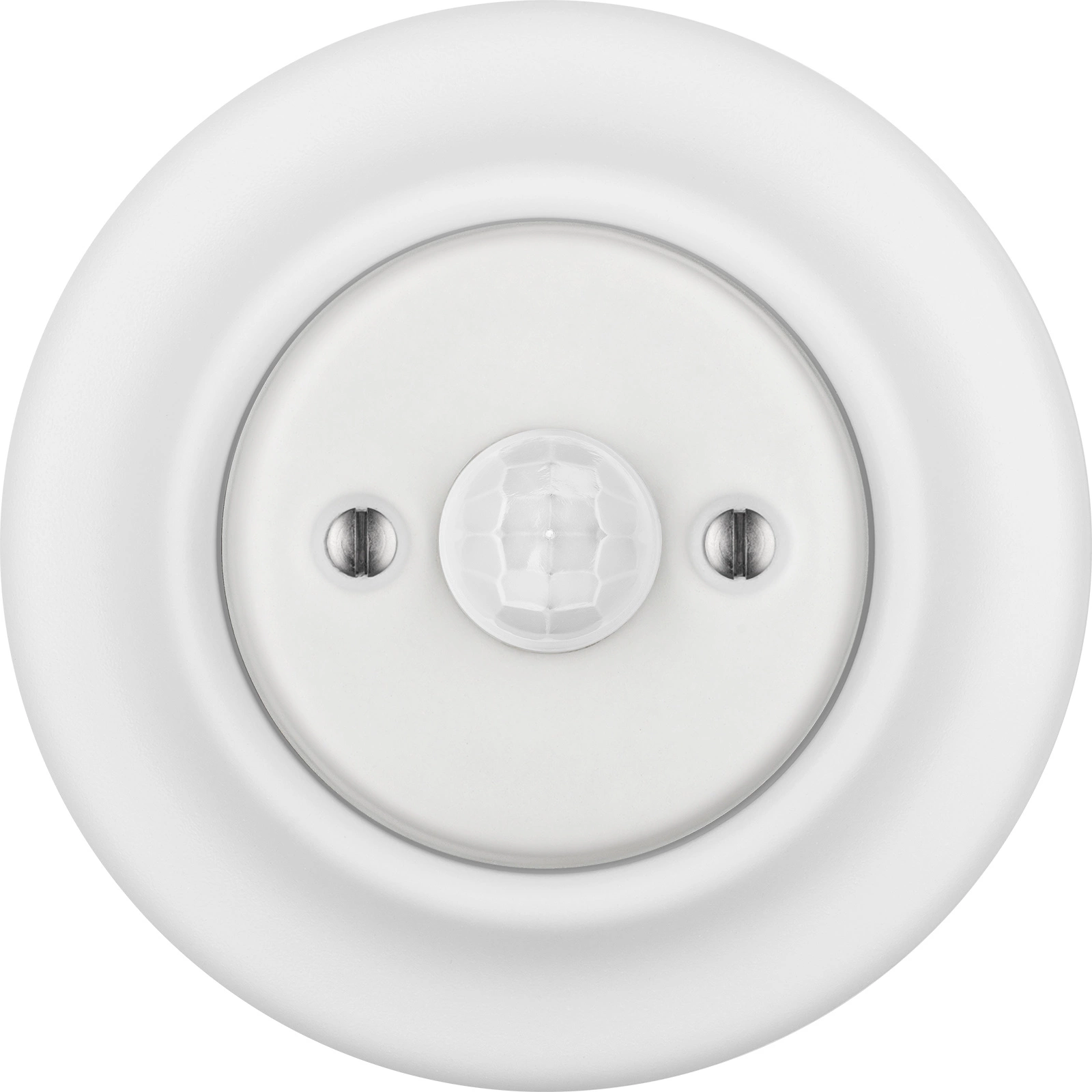Modern bewegingssensor geïnspireerd door retro design. Met glazen oppervlak. Ontworpen in mat wit. Slijt- en kleurechtheid. EG-verklaring van overeenstemming. 50 jaar garantie!
