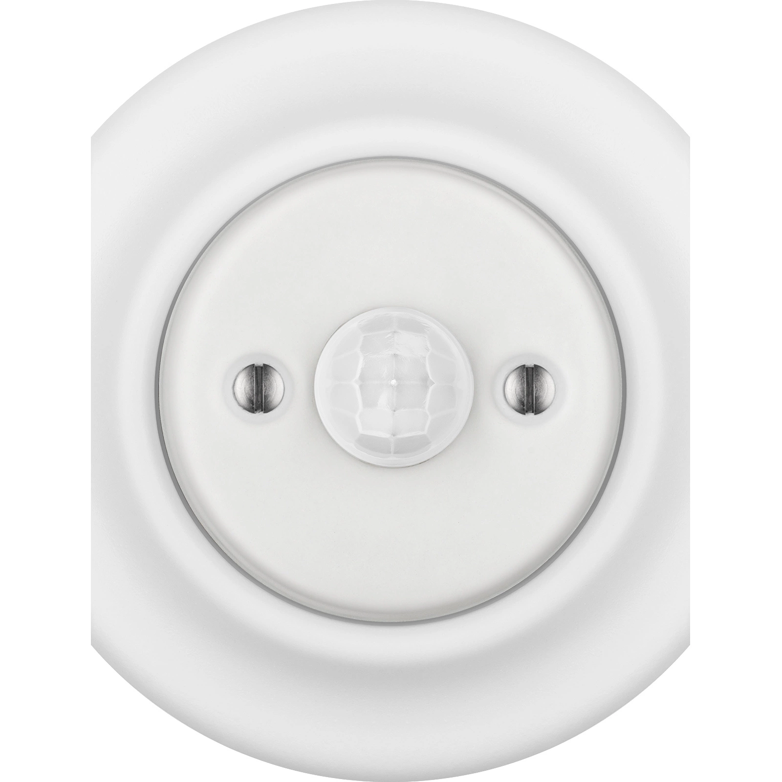Modern bewegingssensor geïnspireerd door retro design. Met glazen oppervlak. Ontworpen in mat wit kleur. Slijt- en kleurechtheid. EG-verklaring van overeenstemming. 50 jaar garantie!